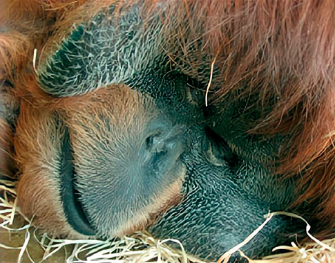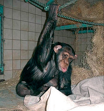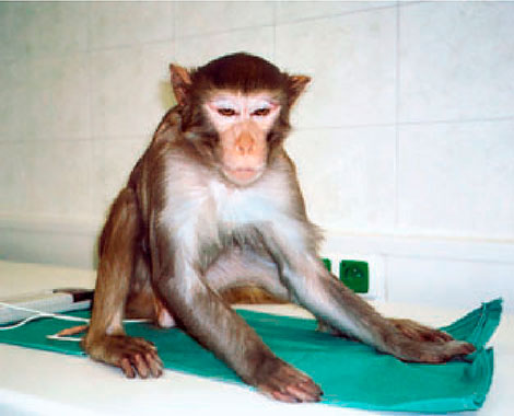 Left — "typical" posture of rhesus macaque 5 minutes after injection (Votava, 2009), center — preserved grasping reflex against deep sedation in chimpanzee (Hess, 2010), right — immobilized orangutan (Hess, 2010)
