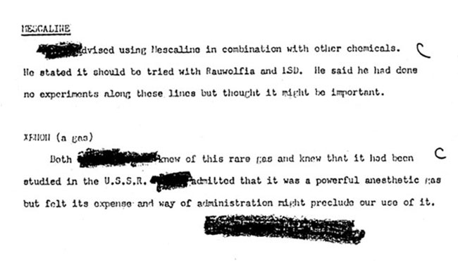 Intelligence interest in the narcotic action of xenon can be traced from the early 60s, when it was first mentioned in CIA documents for the MK-Ultra behavior modification program[19]. At courses of the Ministry of State Security of the DDR (Stasi) on special means, its possible application was also considered[20].