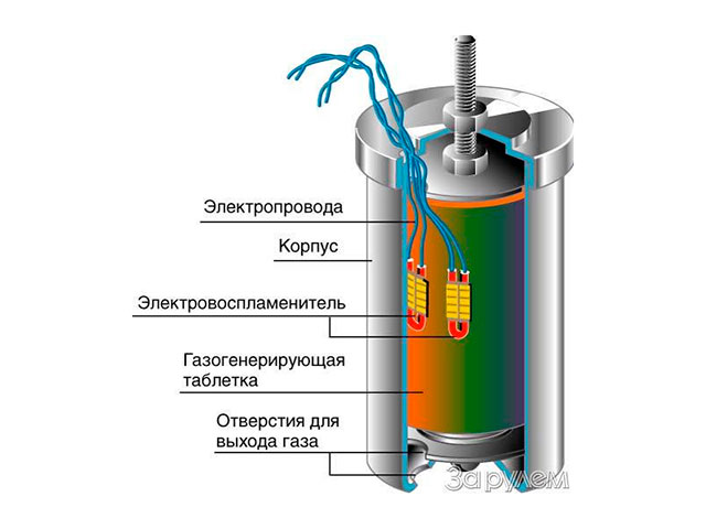 Похожие пиротехнические газогенераторы с электрическим воспламенением используются в охранных системах американских посольств и некоторых государственных учреждений США[43].