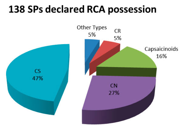 Соотношение имеющихся на вооружении 138 стран-членов ОЗХО различных полицейских ирритантов