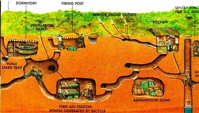 Бинарный CS рассматривался в США как средство длительного, до полугода, заражения подземных тоннелей. Однако, эксперименты по его созданию, проводимые Лабораторией сухопутных войск армии США, закончились неудачей[54]. Сеть тоннелей, протяженностью около 150 км позволяла вьетконговским партизанам наносить скрытые удары и совершать диверсии против американских войск. В тоннелях размещались казармы, склады и госпитали.