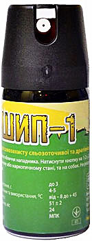 «Шип-1». Струйный. Имеет тот же состав, что и «Терен-1» Дальность поражения до 4 метров. Время непрерывного разбрызгивания — 4–5 секунд.