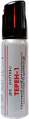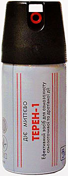 «Терен-1» (50 мл). Аэрозольный. Содержит 2,6% масляный раствор МПК. Эффективен на расстоянии до 3 метров. Время непрерывного распыления — 6–7 секунд. Существует модификация «Терен-1» объемом 30 мл, снабженная предохранителем, исключающим случайное нажатие.