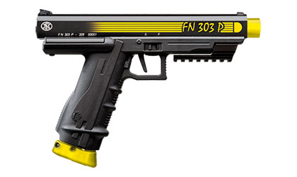 The effective firing range is 20 meters for the FN 303P pistol and 50 meters for the rifle. The projectile weight is 8.5 grams.