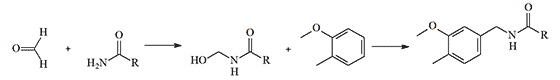 Another early method for obtaining vanillylamides of unsaturated acids (Bradner & Sherrill, 1924) consists of two stages. Initially, the unsaturated acid amide reacts with formaldehyde, and then the resulting oxymethylamide is condensed with guaiacol:[27]