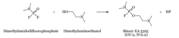 Бинарные компоненты GV-2 точно не известны, но наиболее вероятными кандидатами считаются диметиламидодифторфосфат и диметиламиноэтанол[16].