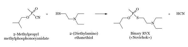 В США рассматривались и другие бинарные реакции получения VX, в том числе компоненты со временем реакции 3–5 секунд[11].