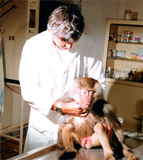 Lack of aggressive response in the baboon (left) and rhesus macaque (right) after carfentanil administration. (L. Hess, 2018)