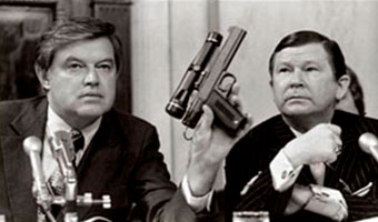 Senators Frank Church and John Tower demonstrate a poison dart gun (U.S. Senate hearings, 1975) |