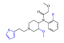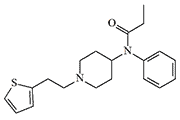 | 2-thienyl | H | Me | CH2OCH3 | 2-F-Ph | 0.00056 | HPiv | 13000 | x29 fentanyl[29] |