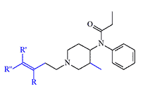 Liquid analogs of 3-methylfentanyl. In the 1990s, interest in olefin derivatives of fentanyl grew in China, with some substances exhibiting remarkable biological activity. Experiments conducted at the Nanjing Military Hospital in 1992 showed that replacing the ethyl group in the 4-N-propionyl portion of 3-methylfentanyl with a chlorovinyl group increased analgesic activity by 1.5 times.[79]