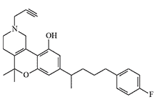 A-41988 (BW29Y, SPA-80). Азаканнабиноид. Проходил клинические испытания в качестве противорвотного средства. В дозировке 60 мг в день вызывал побочные эффекты в виде снижения концентрации, ортостатической гипотензии, сонливости, эйфории, сухость во рту, головокружения, дисфории и сухости склер[82]. Замена пропаргиловой группы на ацетилкарбамидную дает вещество значительно превосхдящее ADL 226169 по активности[110]. |