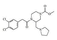 GR 89696. Впервые был синтезирован специалистами фирмы Glaxo в 1990 году и считается одним из самых мощных агонистов κ2-рецепторов[18]. Особенно интересен своей способностью оказывать иммобилизирующее действие на животных в сверхнизких дозах. Мышечная релаксация и выраженная седация у обезьян наблюдалась после введения всего 0,0001–0,001 мг/кг, что соответствует уровню самых современных инкапаситантов. Помимо этого, GR 89696 проявляет свойства анальгетика в дозе 0,00056–0,0012 мг/кг. Механизм анальгезии не связан с влиянием на µ-рецепторы, как у морфина и поэтому не сопровождается явным угнетением дыхания[17].