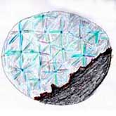 Psychotomimetics often cause visual hallucinations in the form of geometric shapes (form constants): LSD — tunnels or funnels (the first two images on the left), marijuana — honeycomb patterns (third from the left)[17]. "Symmetry" is characterized by geometric visual patterns resembling spokes or snowflakes, as attempted by an experiment participant in the image on the far right, or as depicted in the artwork by the artist known as SalviaDroid in the page header.