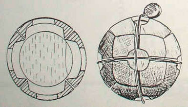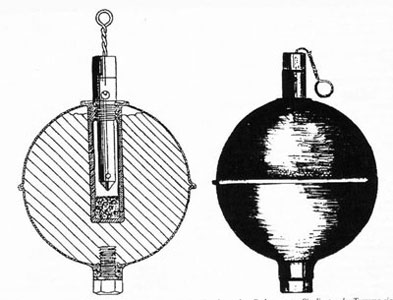 Впервые хлорацетон получил Riche в 1859 году при электролизе смеси соляной кислоты и ацетона. Хлорацетон обладал высокой летучестью, что позволяло создавать непереносимую концентрацию на открытой местности, в отличие от состоявшего на вооружении французской армии этилбромацетата, который был эффективен только в закрытых помещениях. Хлорацетон оказывает преимущественно слезоточивое действие, но при длительном воздействии может вызвать конъюнктивит, кератит и помутнение роговицы. При высоких концентрациях оказывает удушающее действие подобно фосгену. Британское военное министерство начало экспериментировать с хлорацетоном весной 1914 года, но признало его непригодным для военного применения[11]. А вот французские химики проявили к хлорацетону гораздо больший интерес. В январе 1915 года директор лаборатории органической химии в Сорбонне профессор Габриэль Бертран (Gabriel Bertrand) представил на рассмотрение военного ведомства проект необычной гранаты. Она имела форму шара и состояла из 6 чугунных фрагментов, окружавших круглую стеклянную колбу. При ударе об землю стекло разбивалось, освобождая пары хлорацетона[1].
